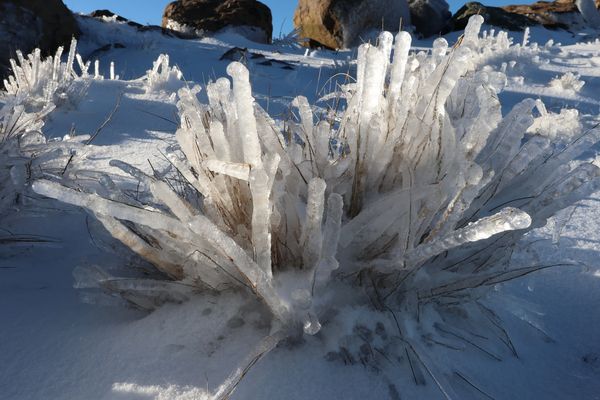 Gaanha Bula- Mt Canobolas, near Orange, in the central west of NSW, rises to 1395 m above see level, and more than 500 m above the surrounding plain. It is the highest point in the combined Blue Mountains, Central West and Southern Highlands regions. The summit area is subject to frequent winter snowfall and ice formation, creating a winter wonderland and a photograhers delight.